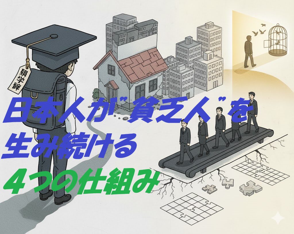 日本では、奨学金、住宅ローン、会社員最強説、金融リテラシーの欠如といった構造によって、多くの人が知らないうちに「自由に選べない人生」を歩むようになっています。